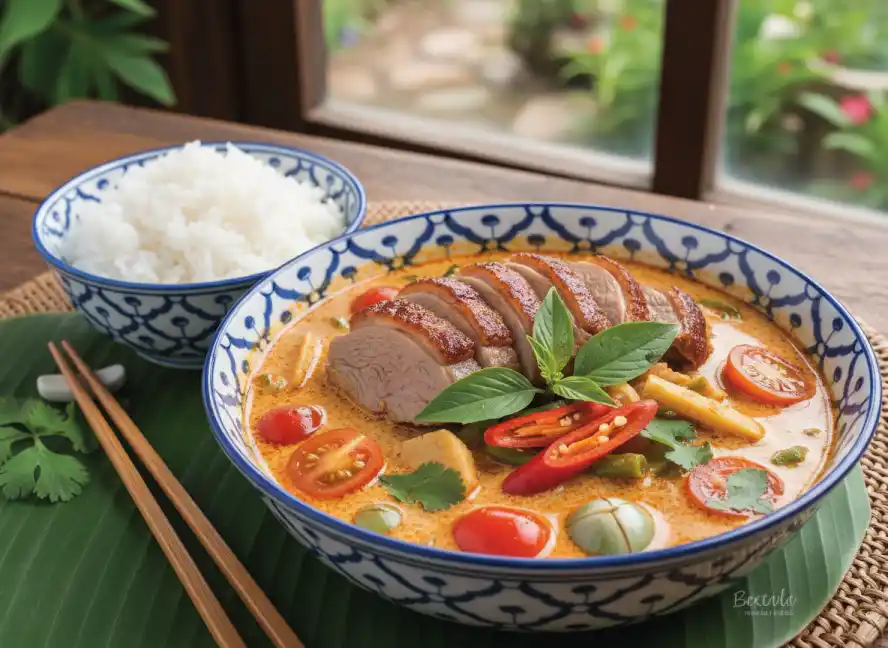 Genießen Sie hausgemachtes Thai-Rot-Curry, das perfekt zubereitet ist.